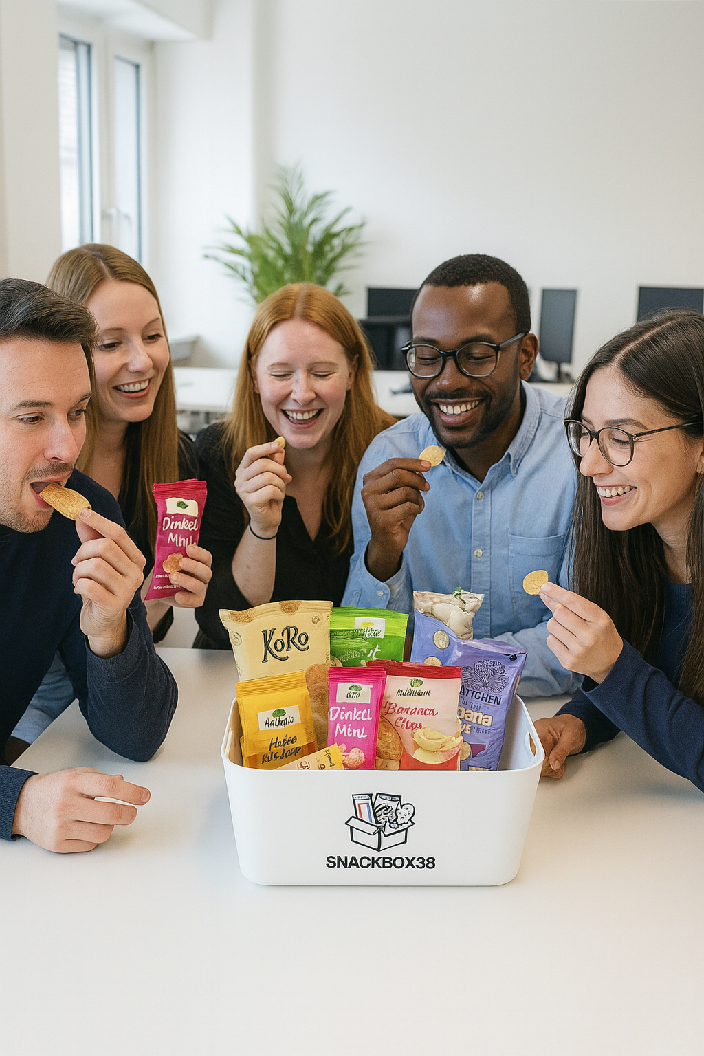 Snackbox38 bietet dir hochwertige, handverlesene Snackboxen, die perfekt auf die Bedürfnisse von Unternehmen und Teams abgestimmt sind. Ob als kleine Aufmerksamkeit für Mitarbeitende, für Meetings oder als regelmäßige Genusslieferung – unsere Snackboxen bringen Vielfalt, Qualität und Nachhaltigkeit direkt in dein Büro. Der Inhalt jeder Box variiert regelmäßig und sorgt so für frische Abwechslung und immer neue Geschmackserlebnisse. Egal, ob Einzelbestellung zum Testen oder bequem im Abo – bei Snackbox38 findest du die passende Lösung.